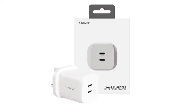 2-Power Wall Charger PD 65W GaN 2 x USB-C – 5V @ 3.0A (15W), 20V @ 3.25A (65W), 15V @ 3.0A (45W), 9V @ 3.0A (27W), 12V @ 3.0A (36W)