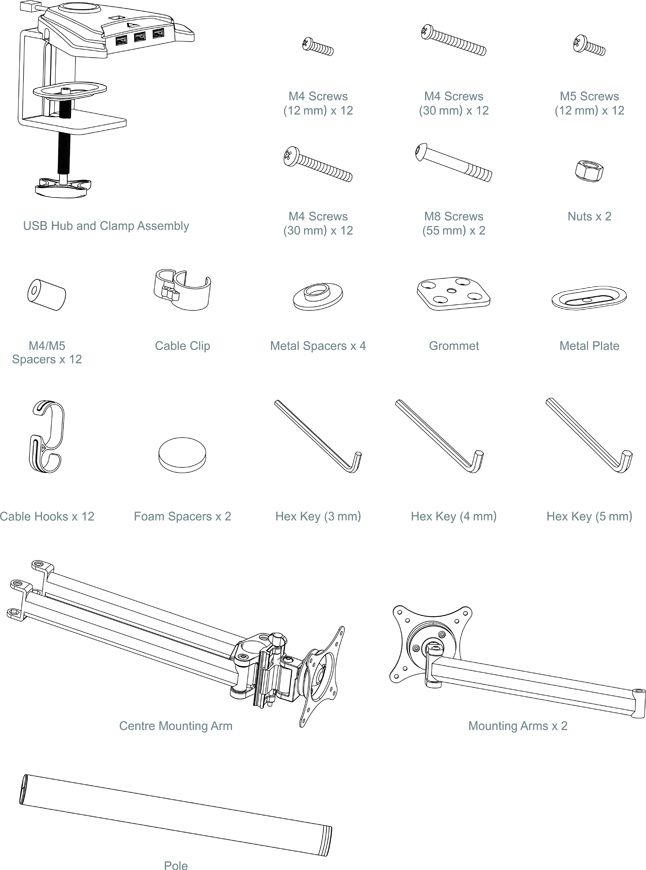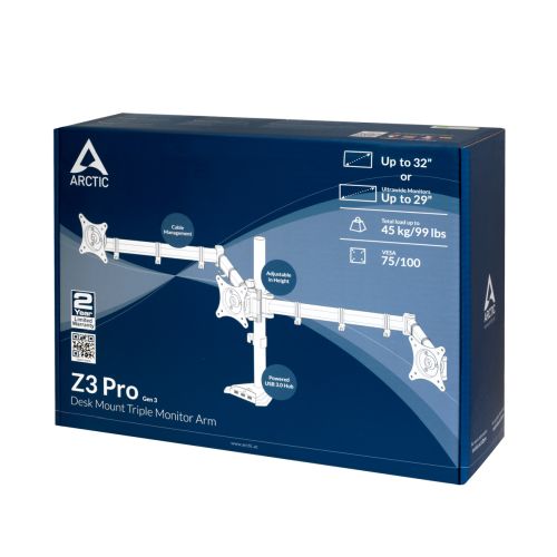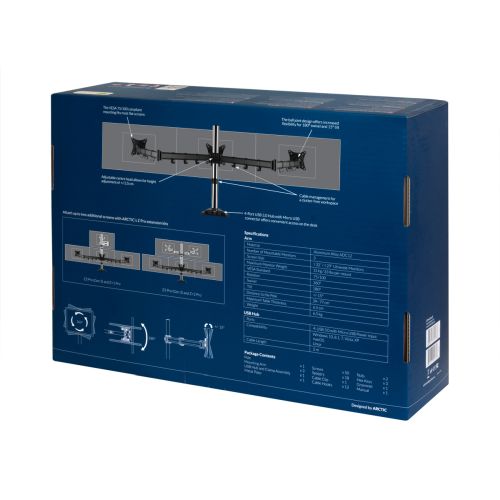 Arctic Z3 Pro (Gen3) Triple Monitor Arm with 4-Port USB 3.0 Hub, Up to 32″ Monitors / 29″ Ultrawide, 180° Swivel, 360° Rotation