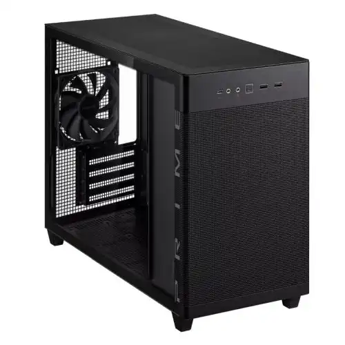 The ASUS Prime AP201 Tempered Glass version is a stylish 33-liter MicroATX case with tool-free side panels, with support for 360 mm coolers, graphics cards up to 338 mm long, and standard ATX PSUs.
