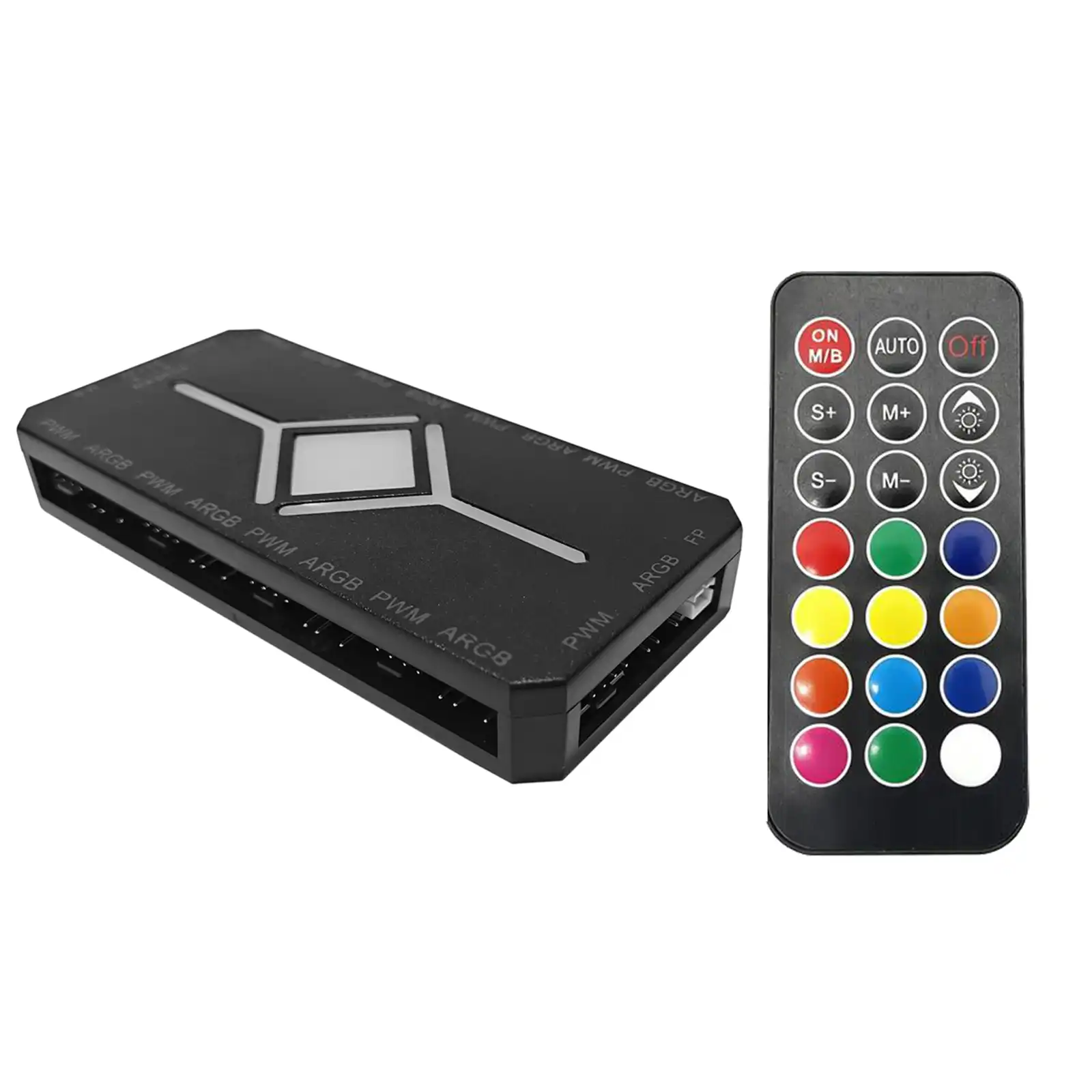 It lets you control up to eight 3pin DC or 4pin PWM fans and one CPU cooler. The hub supports fan speed, out-of-the-box control with a radio frequency remote control or software control of multiple fans through a single header.