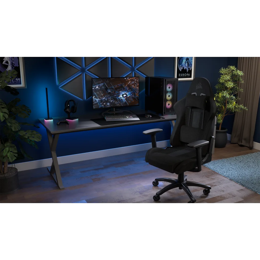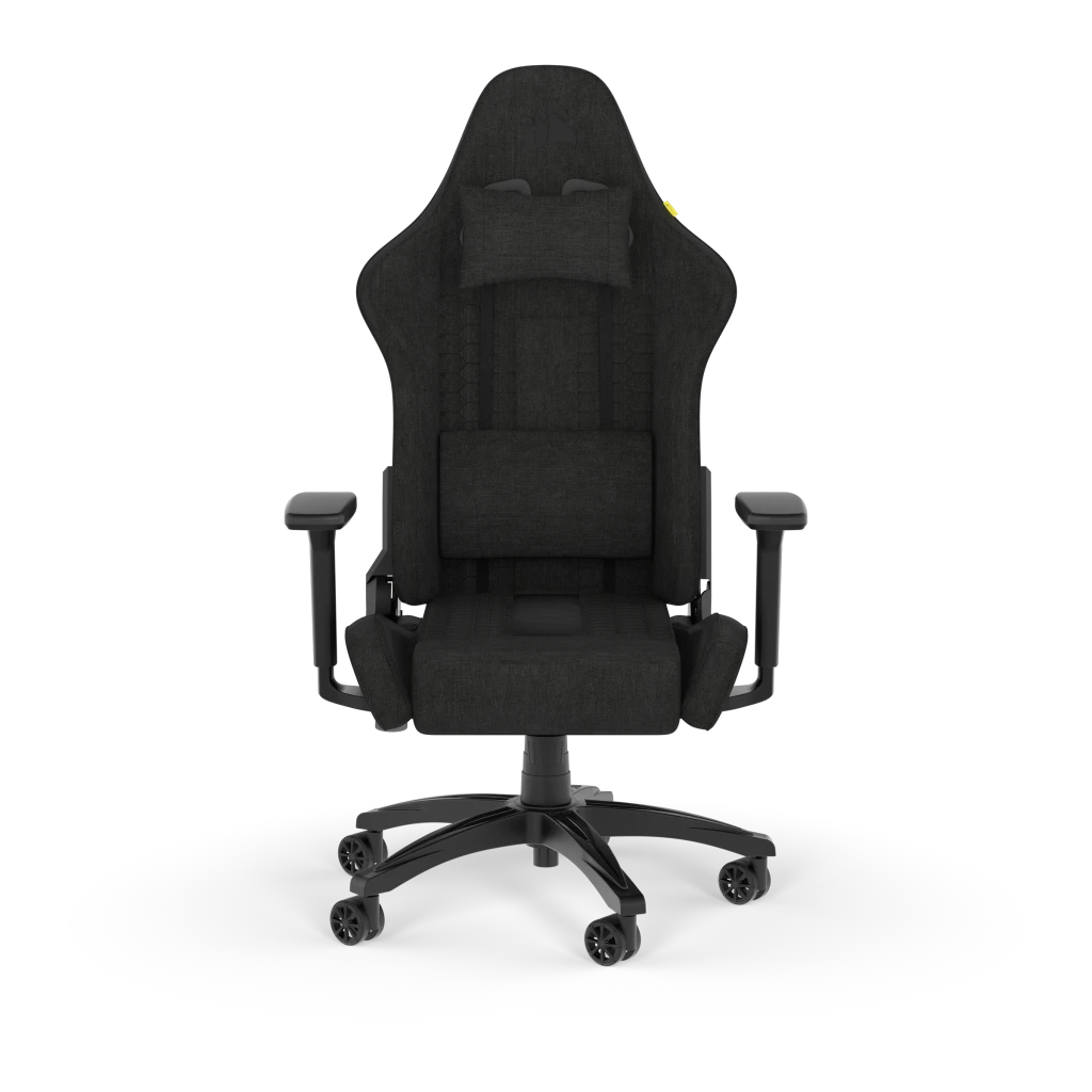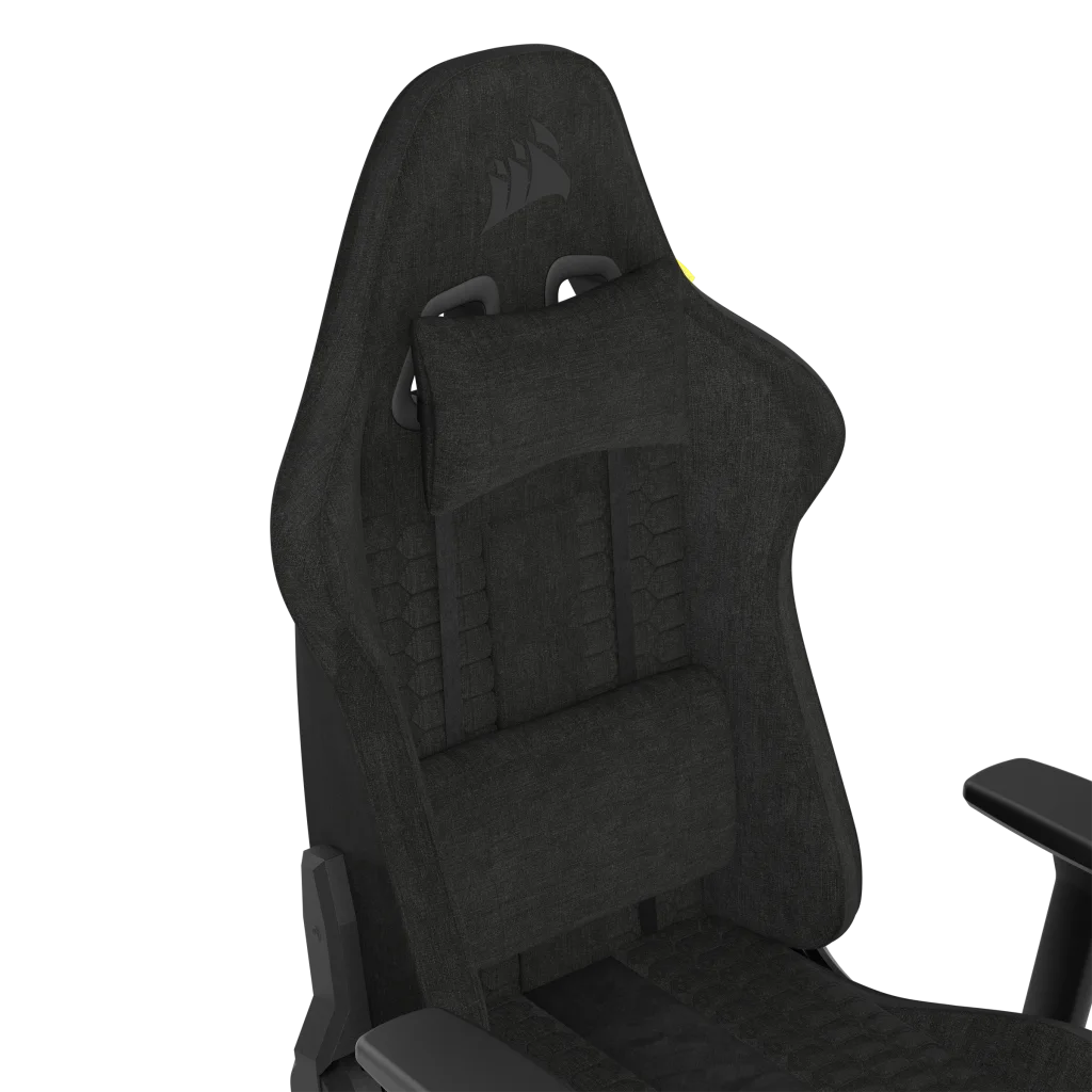 Corsair TC100 RELAXED Gaming Chair – Fabric – Racing-Inspired Design – Lumbar Pillow – Detachable Memory Foam Neck Pillow – Adjustable Seat Height – Adjustable Armrests – Black