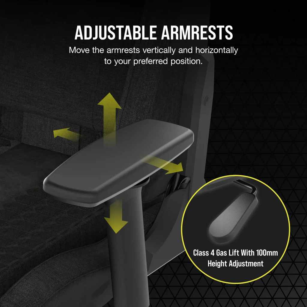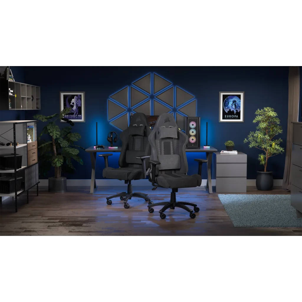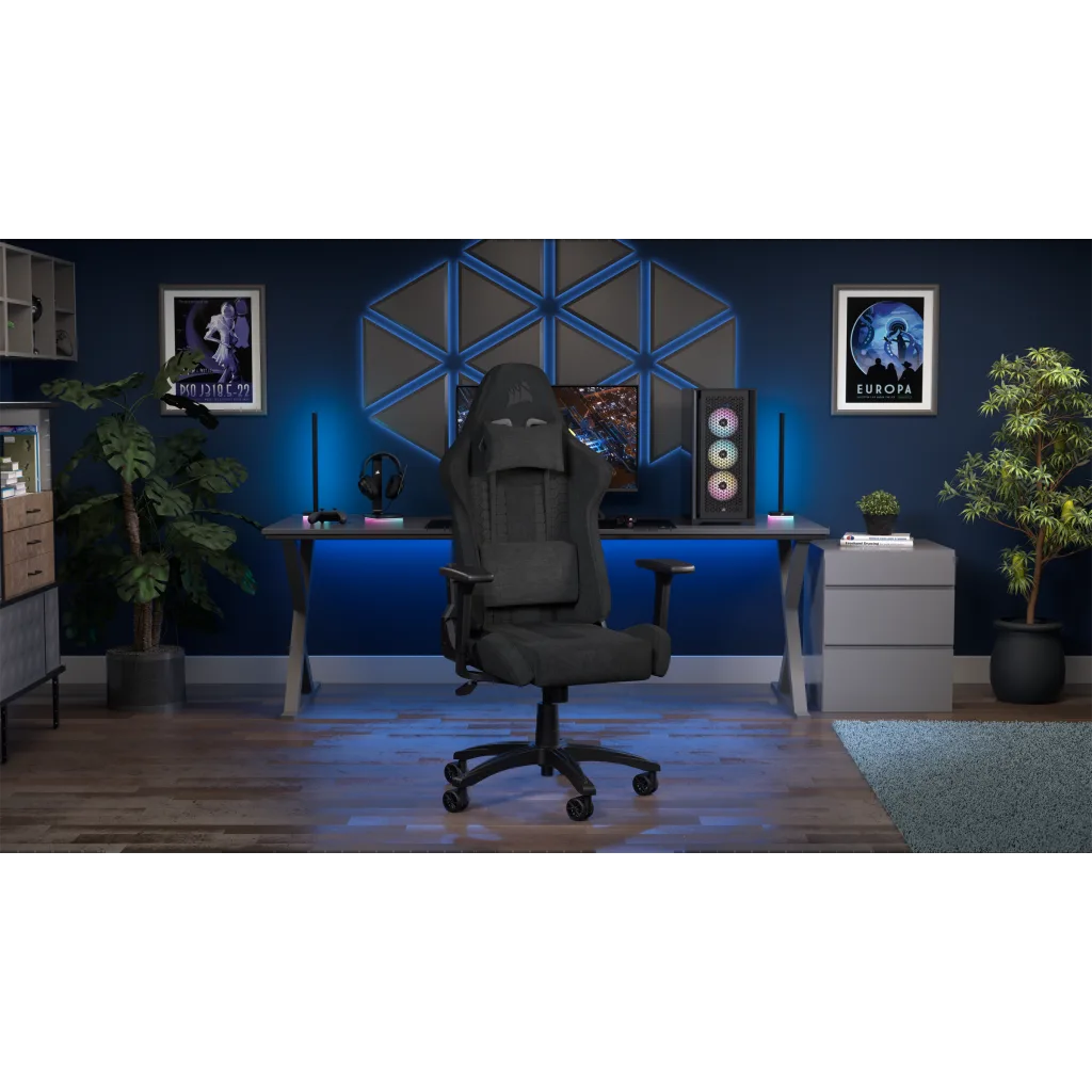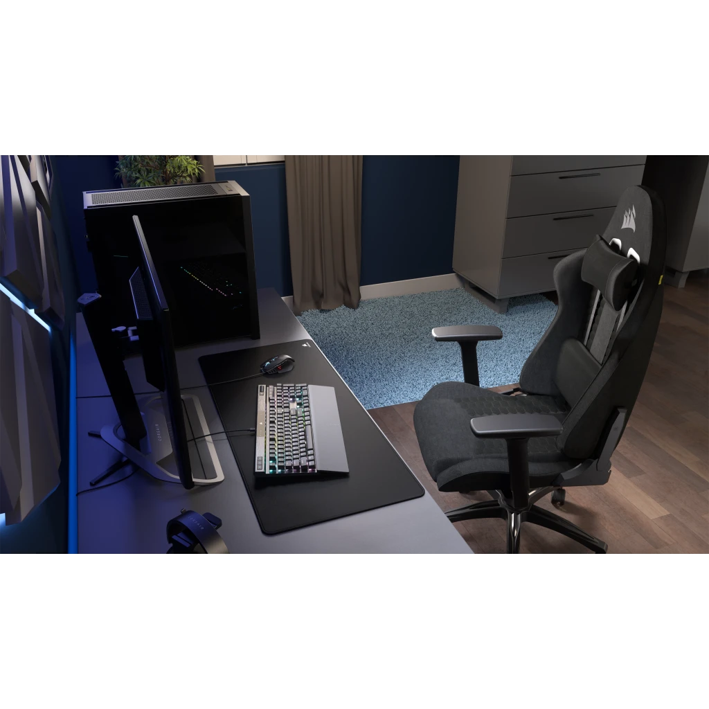 Corsair TC100 RELAXED Gaming Chair – Fabric – Racing-Inspired Design – Lumbar Pillow – Detachable Memory Foam Neck Pillow – Adjustable Seat Height – Adjustable Armrests – Black
