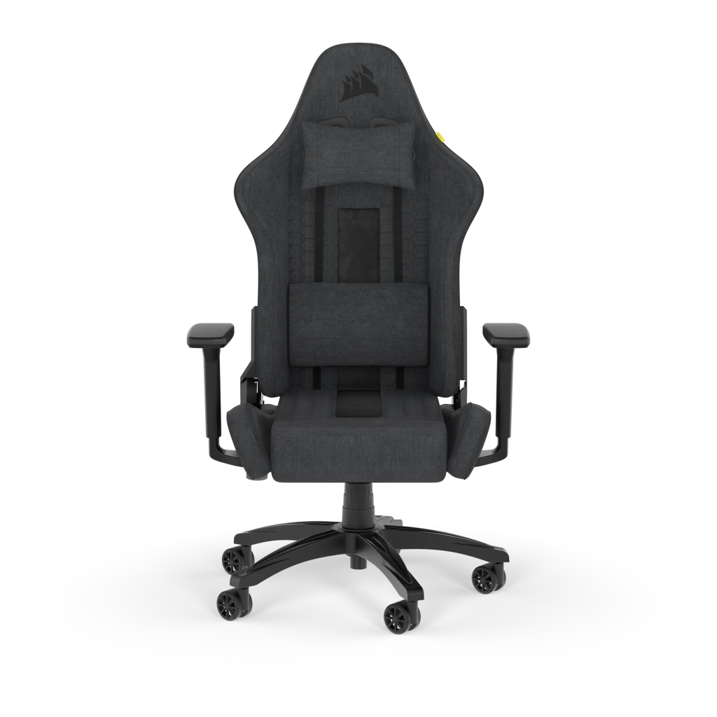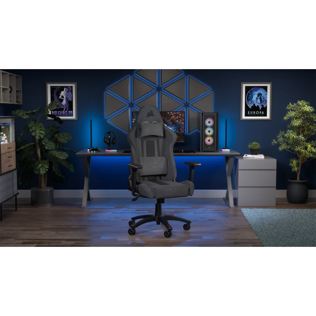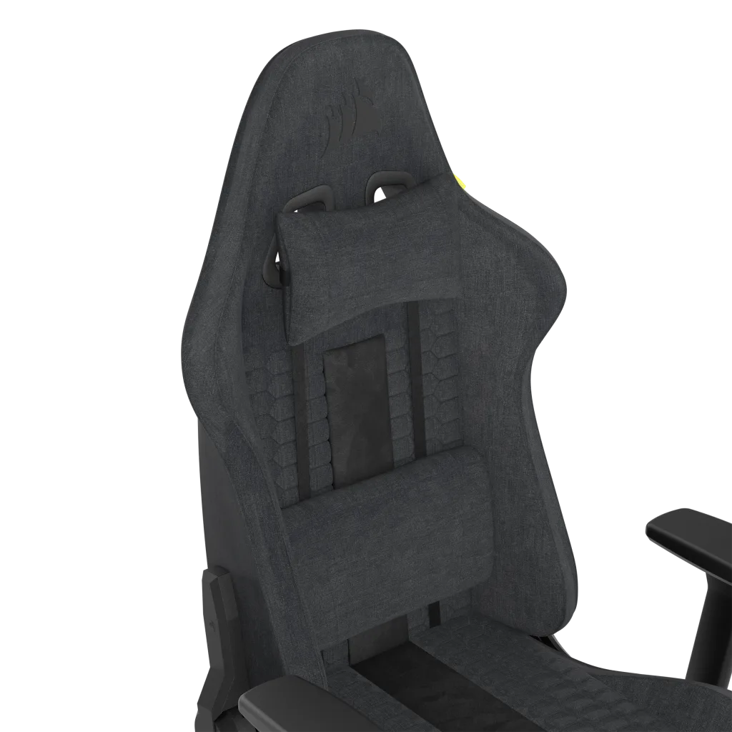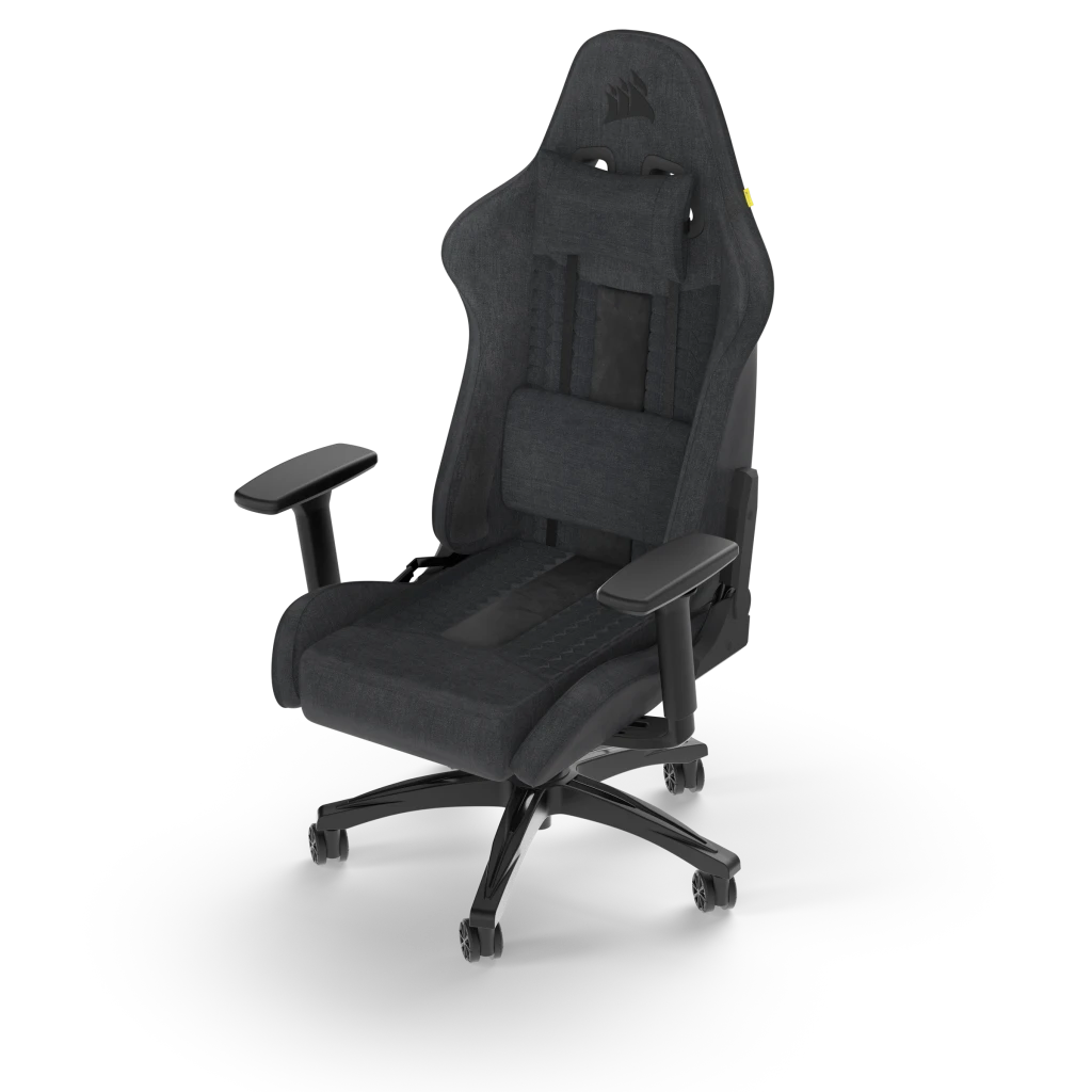 Corsair TC100 RELAXED Gaming Chair – Fabric – Racing-Inspired Design – Lumbar Pillow – Detachable Memory Foam Neck Pillow – Adjustable Seat Height – Adjustable Armrests – Grey & Black