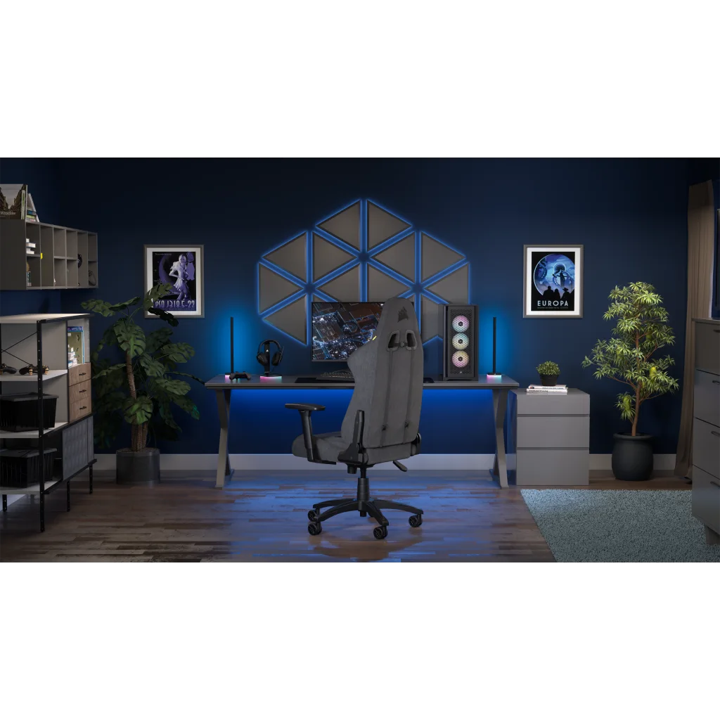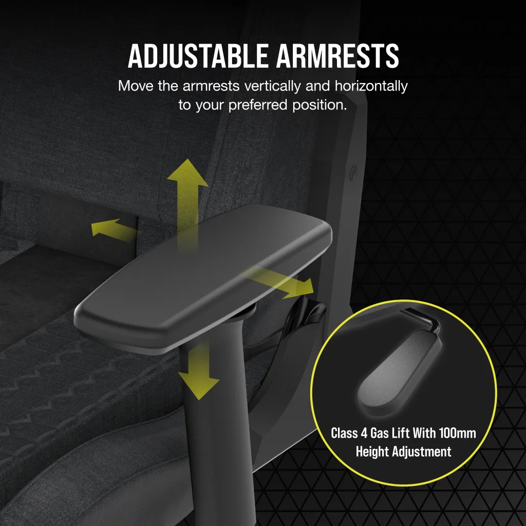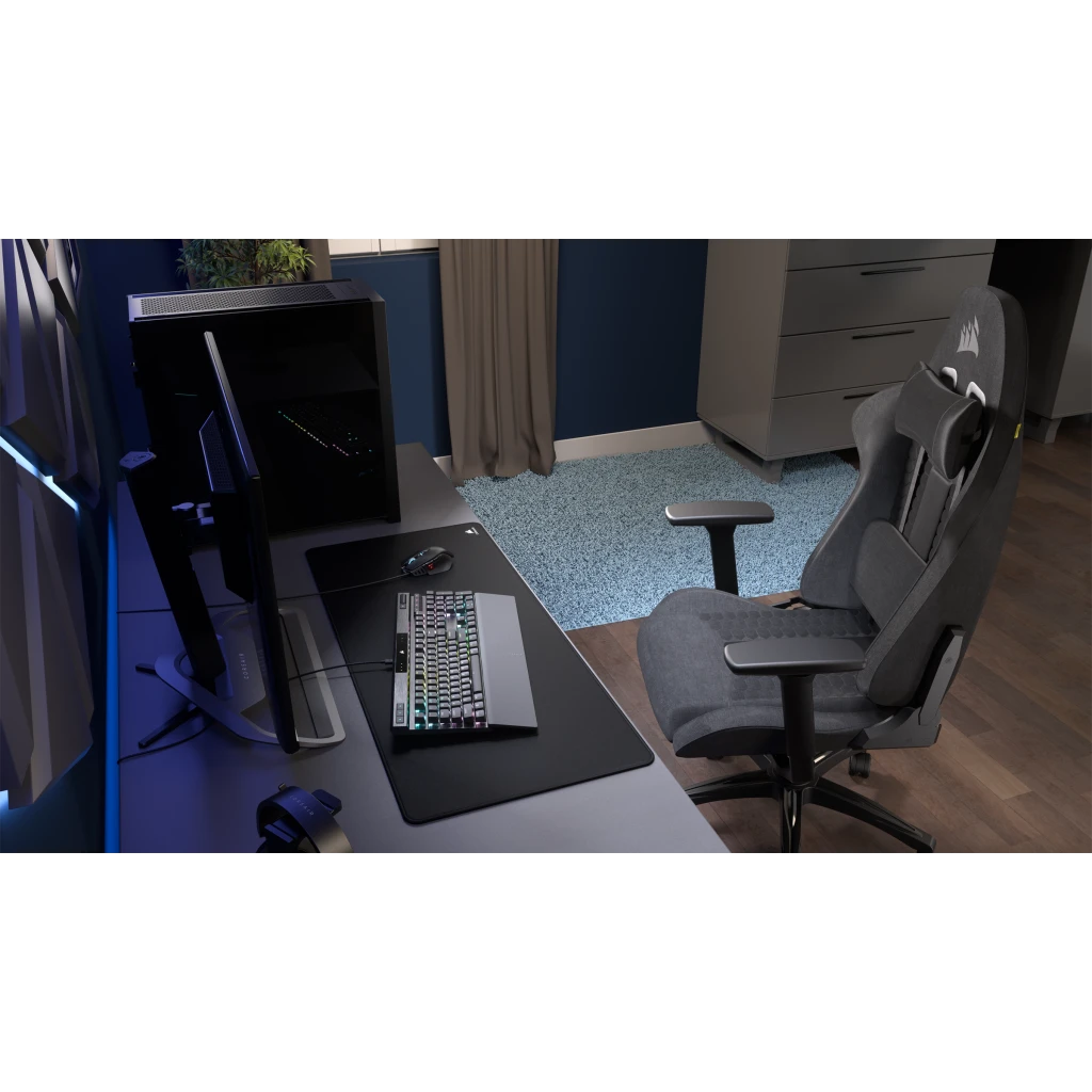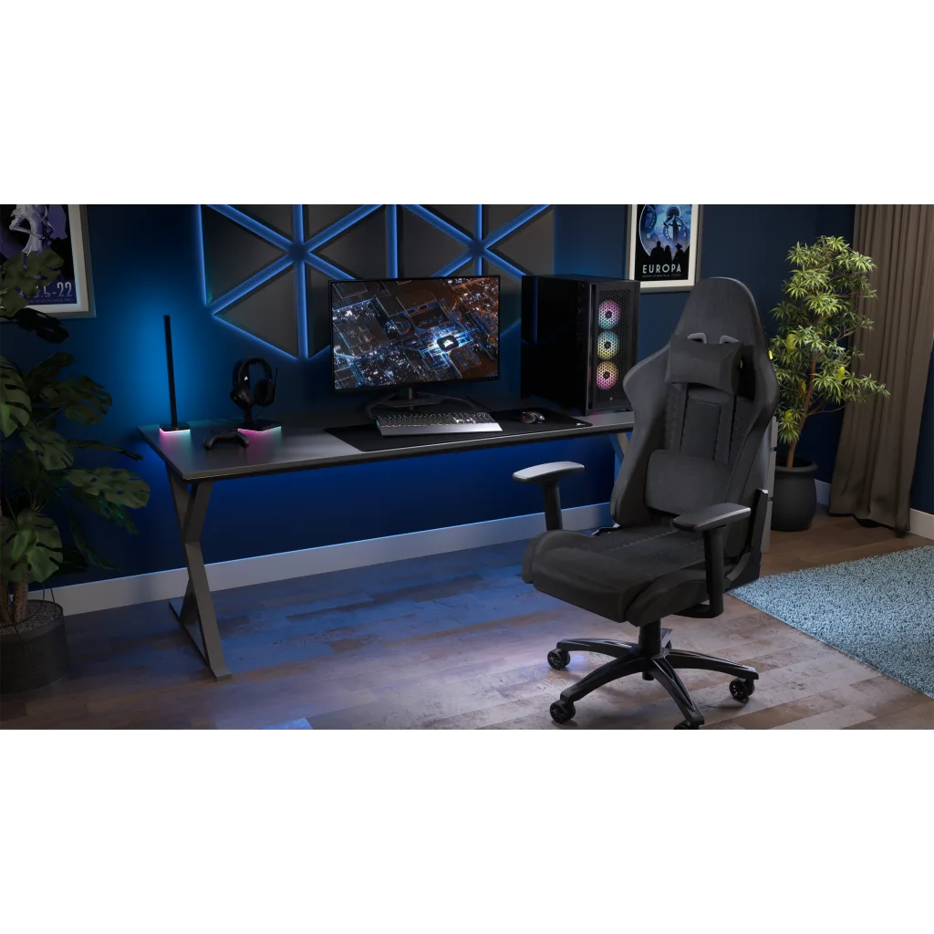 Corsair TC100 RELAXED Gaming Chair – Fabric – Racing-Inspired Design – Lumbar Pillow – Detachable Memory Foam Neck Pillow – Adjustable Seat Height – Adjustable Armrests – Grey & Black