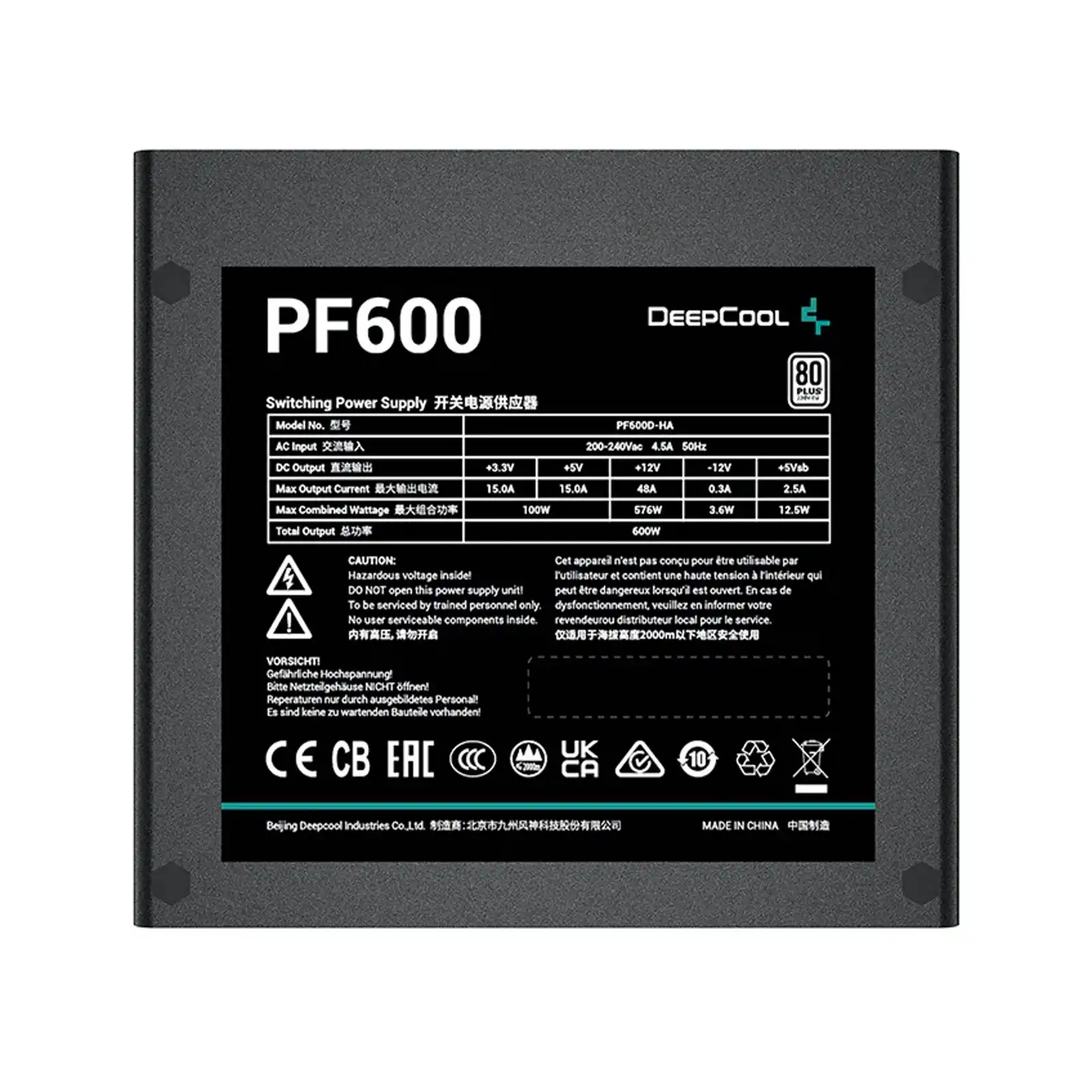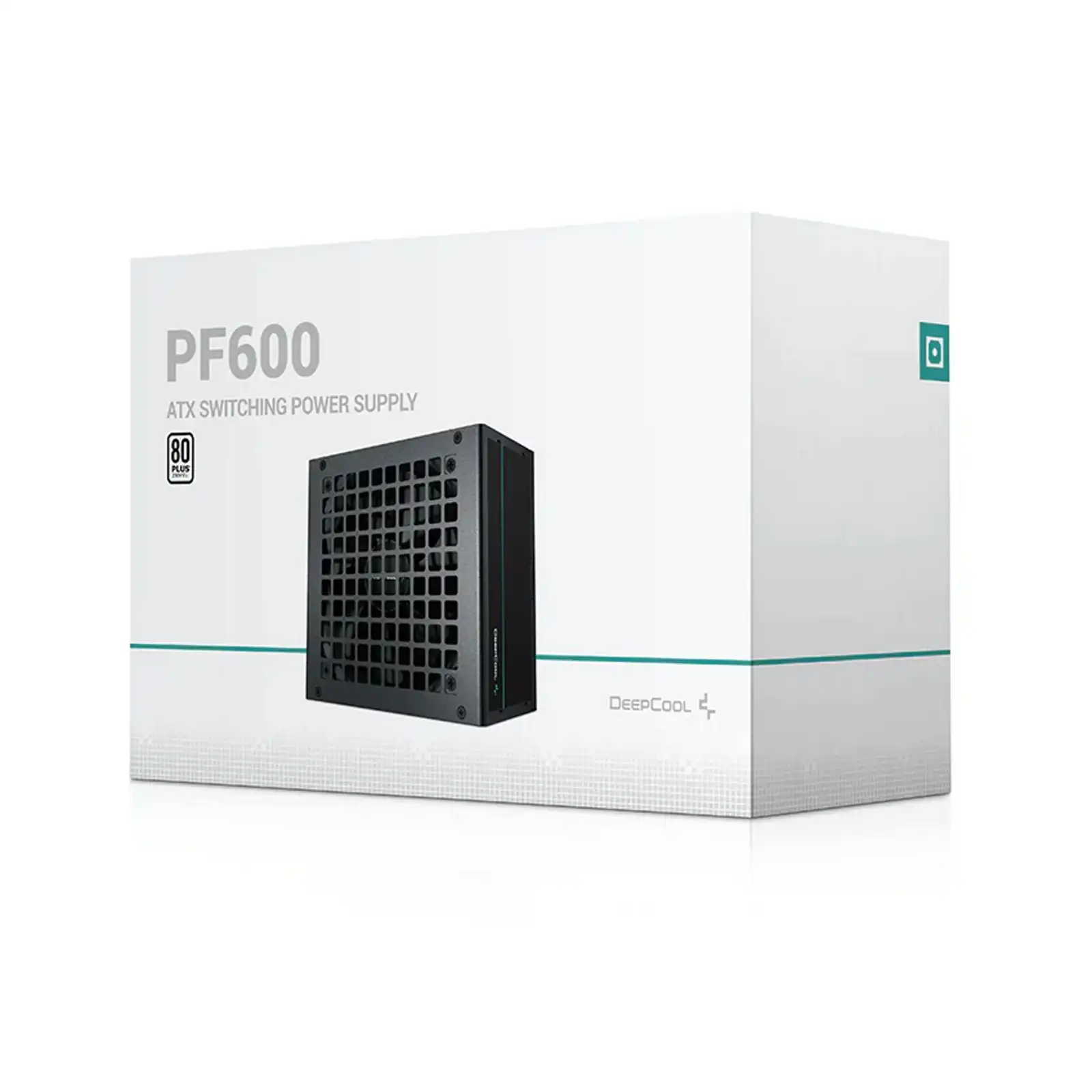 DeepCool PF600 600W PSU, 120mm Silent Hydraulic Bearing Fan, 80 PLUS White, Non Modular, UK Plug, Flat Black Cables