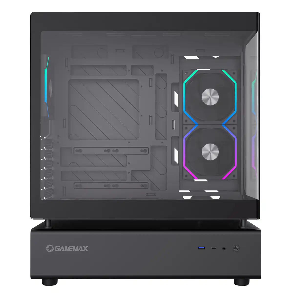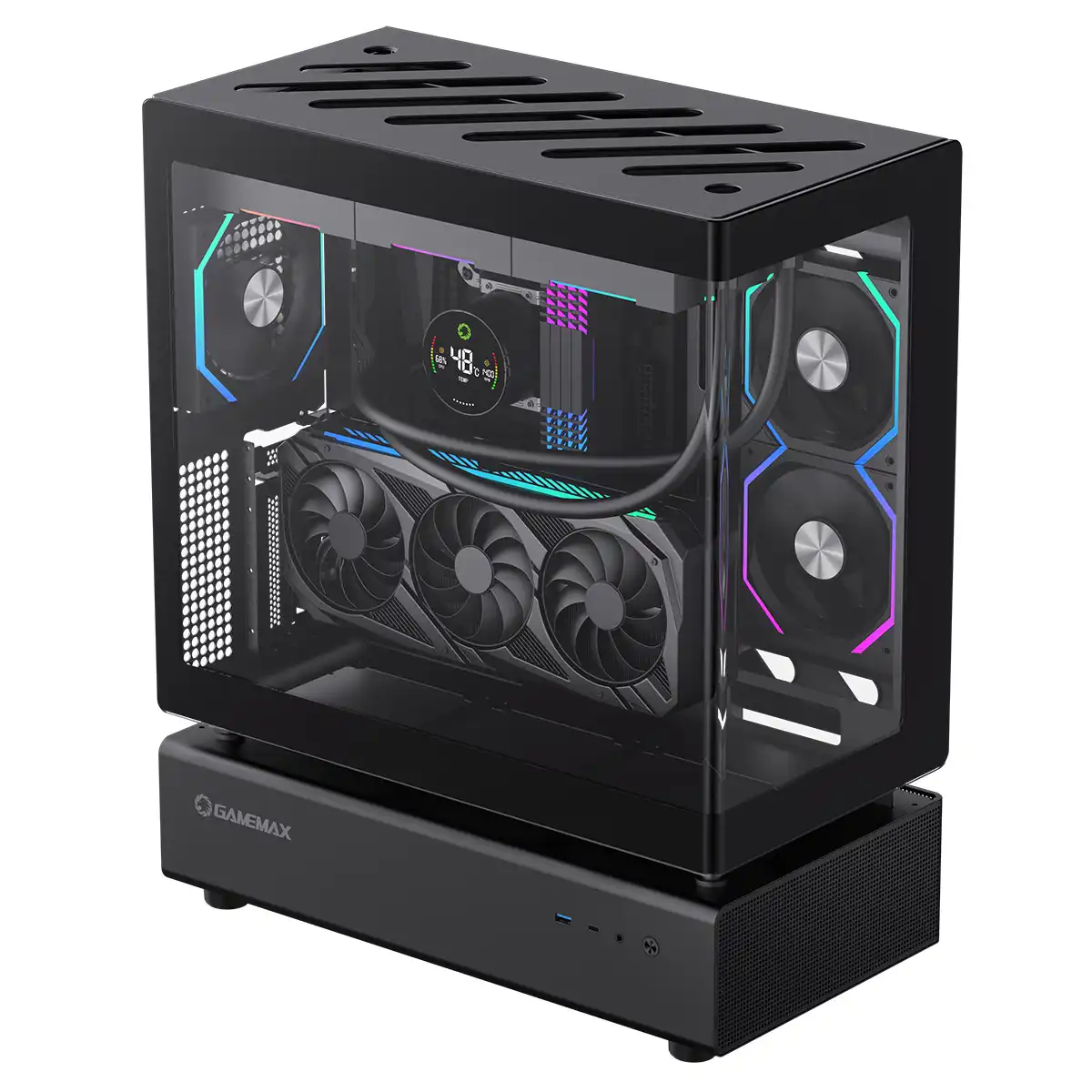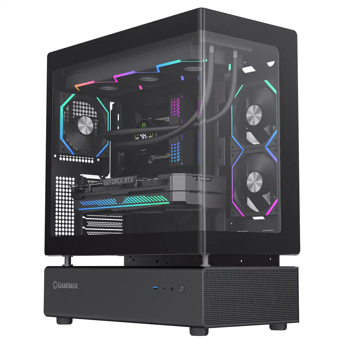 GameMax N80 Black ATX PC Gaming Case with 6 x 120mm PWM ARGB Fans and 10-Port Fan Hub Included With Curved Tempered Glass Panel