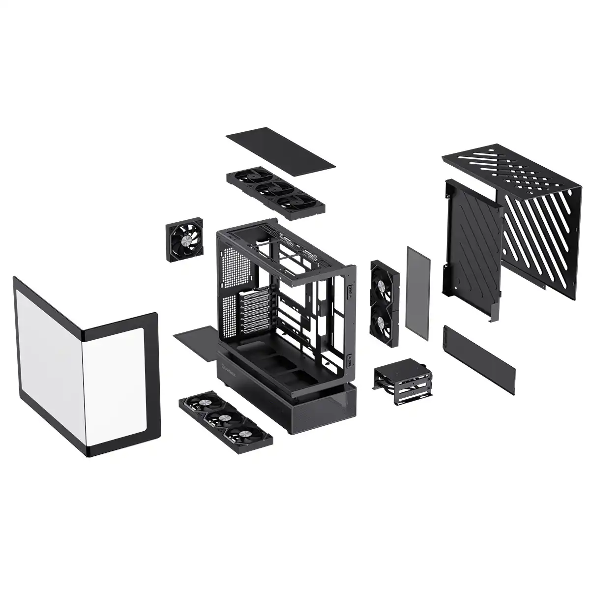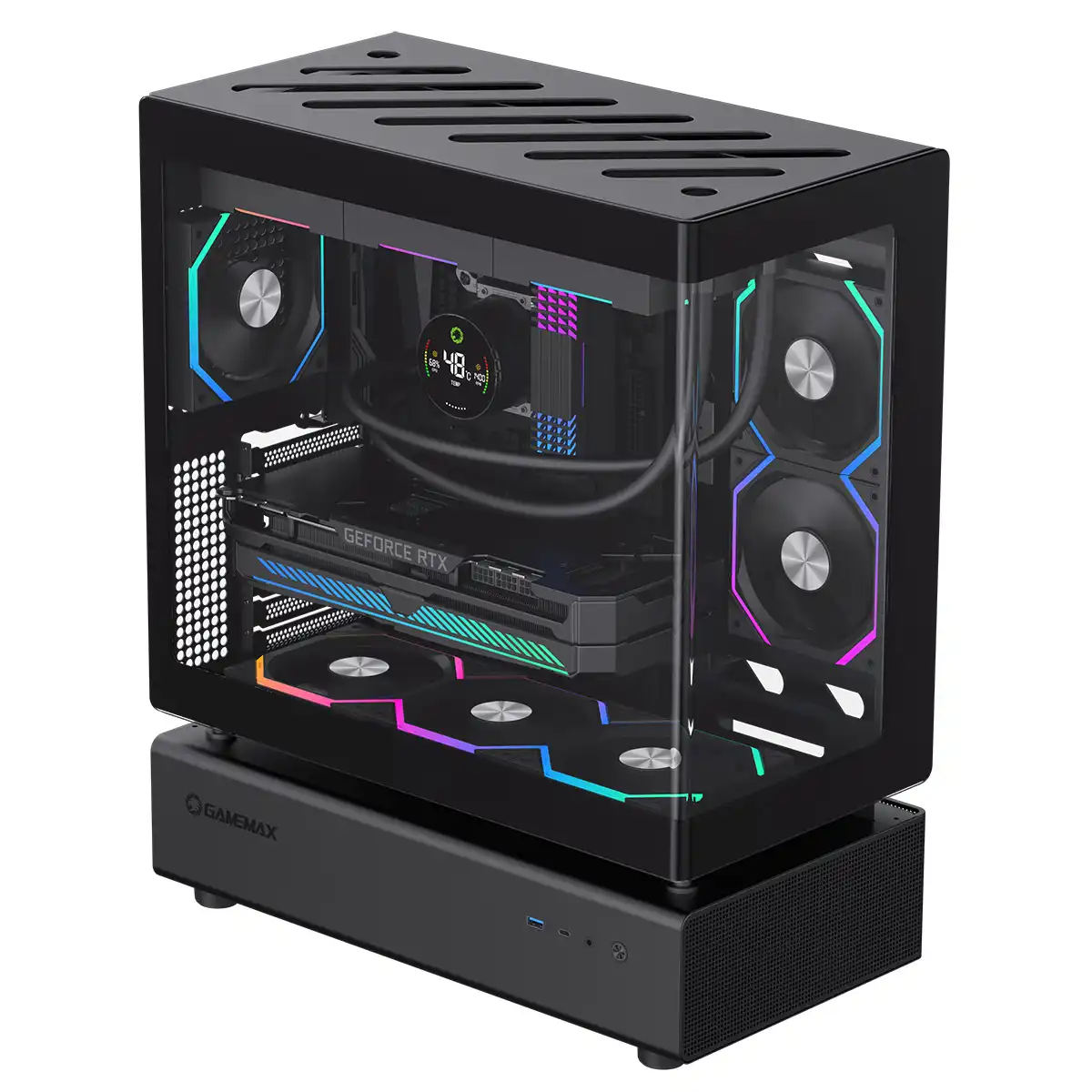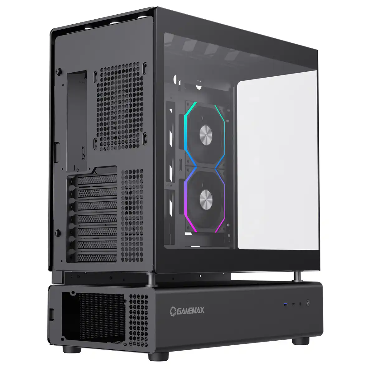 GameMax N80 Black ATX PC Gaming Case with 6 x 120mm PWM ARGB Fans and 10-Port Fan Hub Included With Curved Tempered Glass Panel