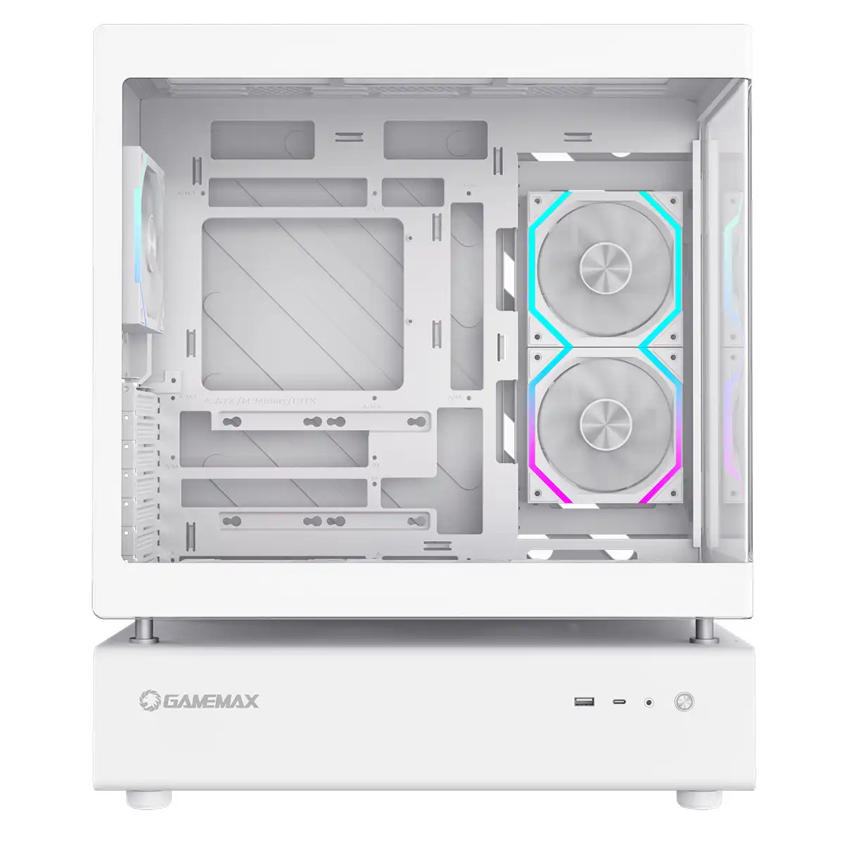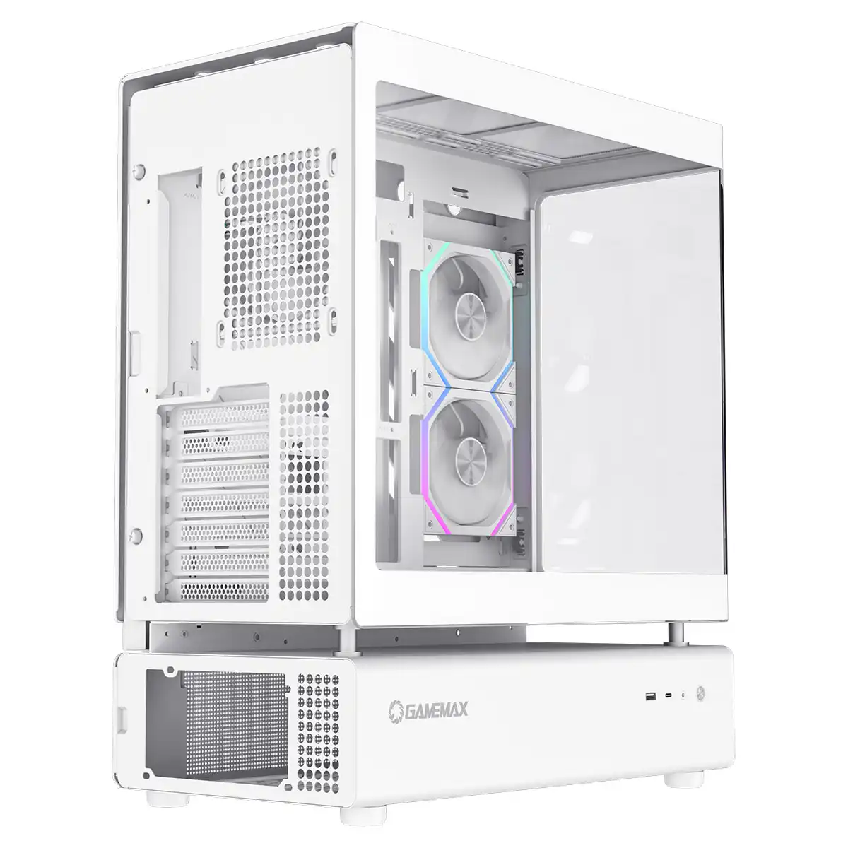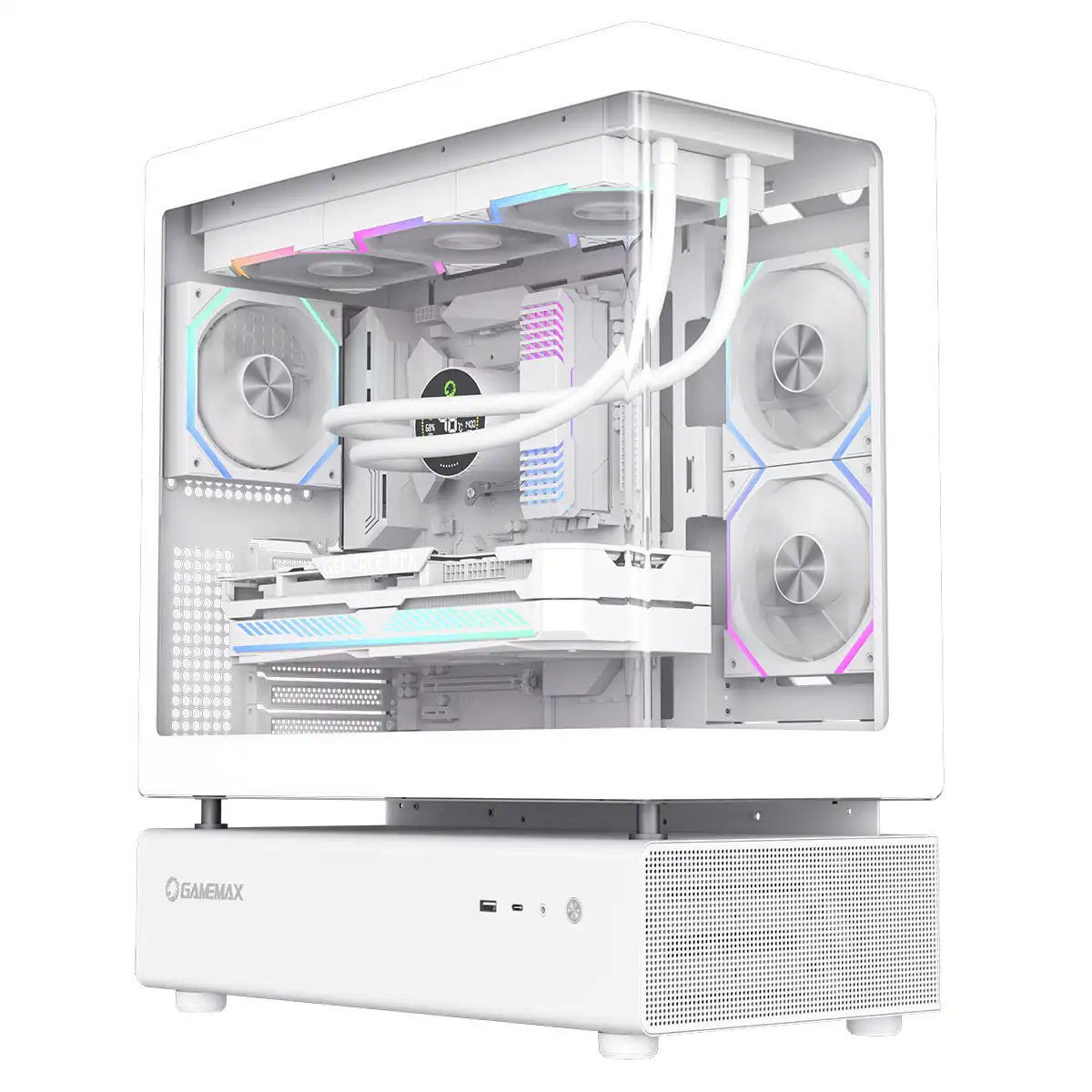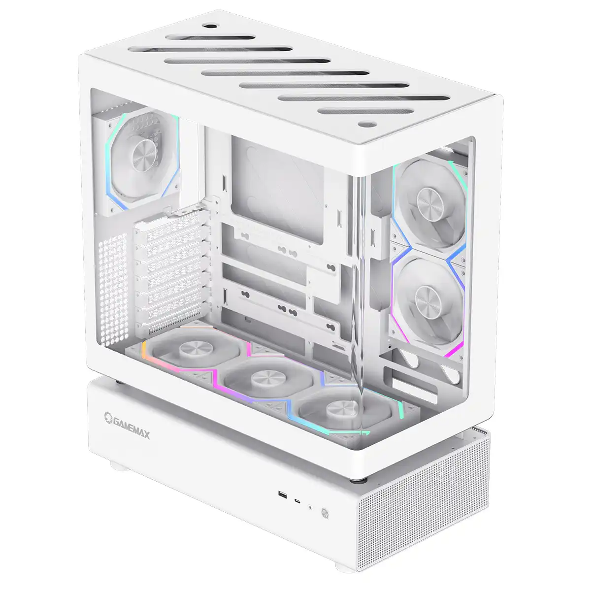 GameMax N80 White ATX PC Gaming Case with 6 x 120mm PWM ARGB Fans and 10-Port Fan Hub Included With Curved Tempered Glass Panel