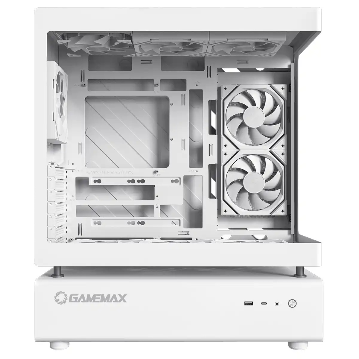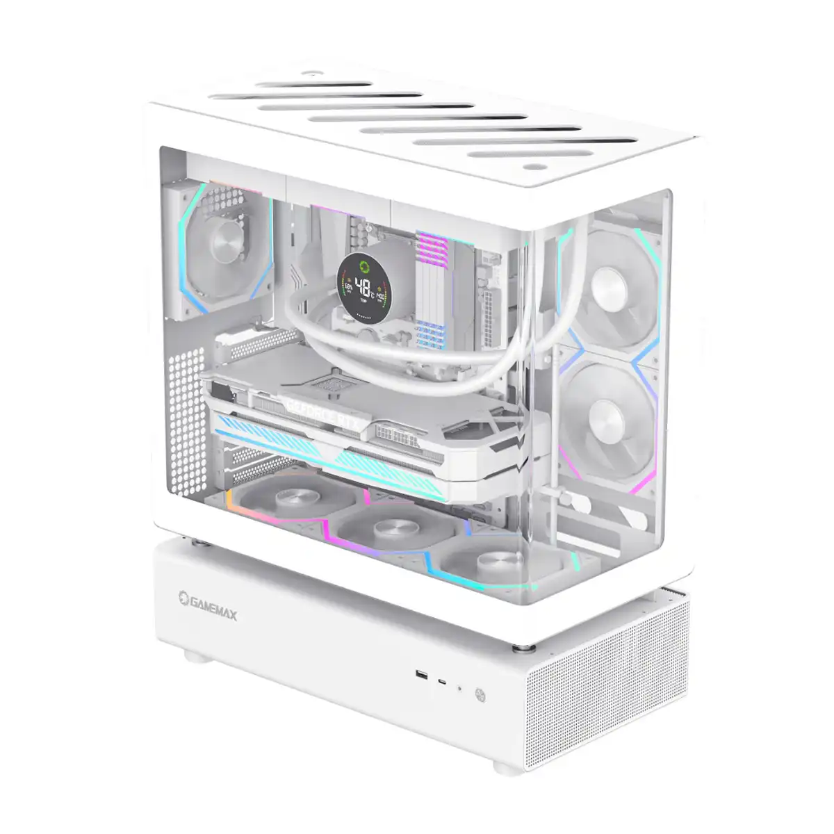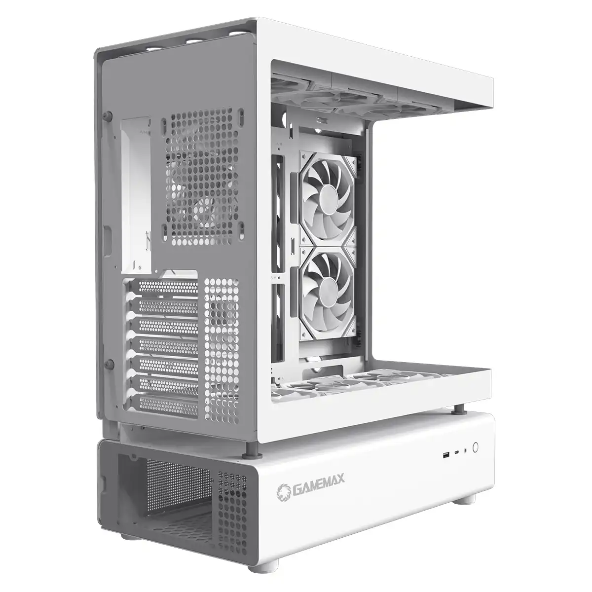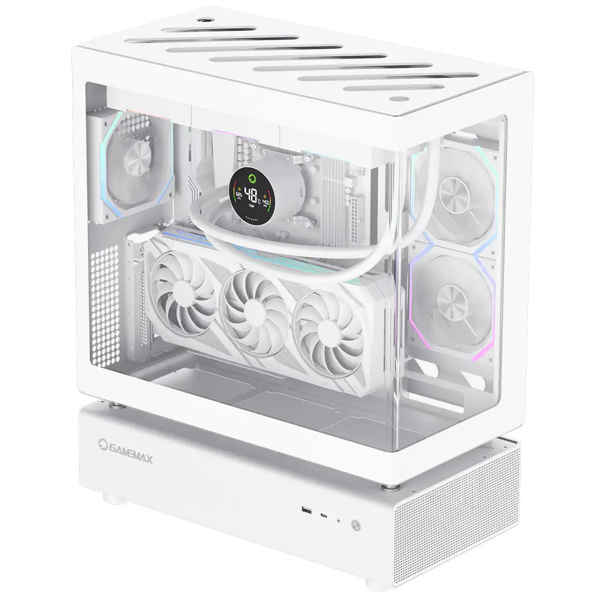 GameMax N80 White ATX PC Gaming Case with 6 x 120mm PWM ARGB Fans and 10-Port Fan Hub Included With Curved Tempered Glass Panel