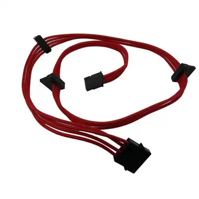 Powercool 20cm Male molex 4pin to 4 x SATA Power Braided Cable – Red