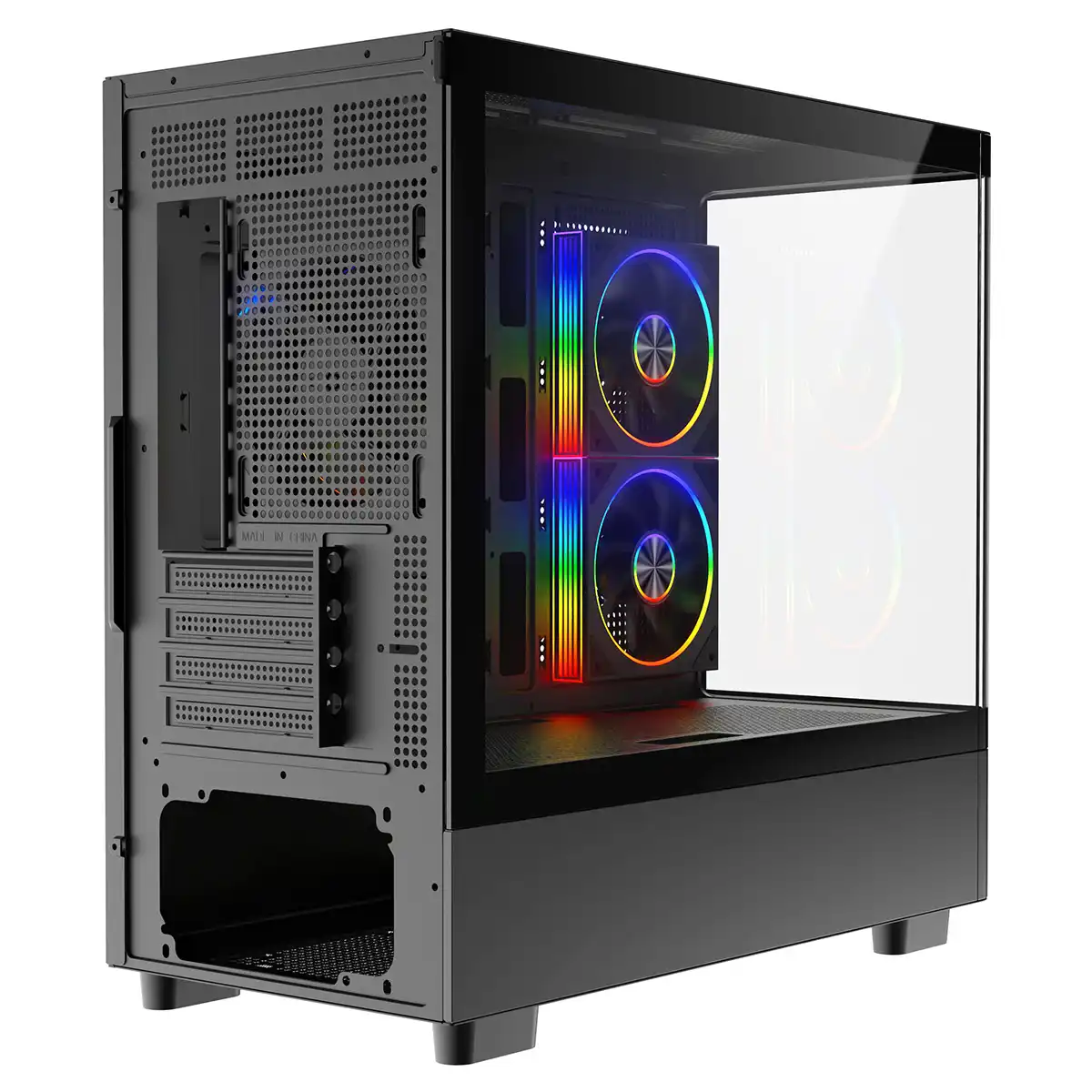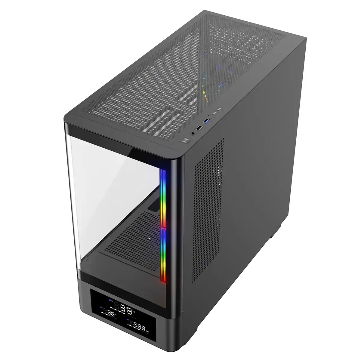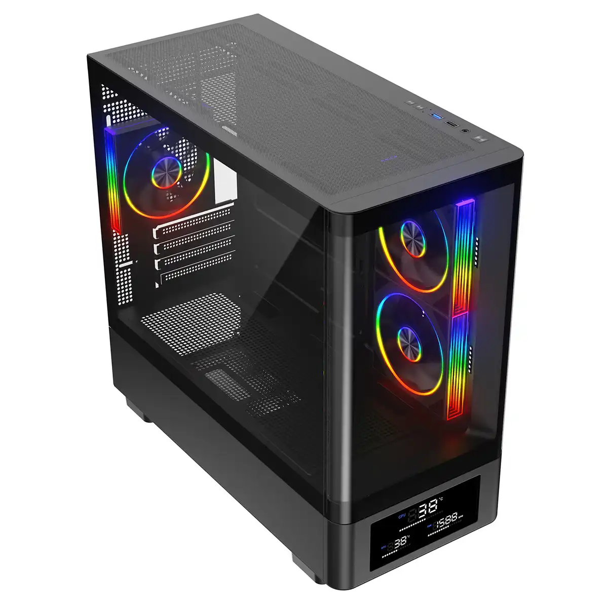 Powercool Gravity Black mATX Gaming Case With Display Curved Tempered Glass With 3 x CiT Saturn PWM ARGB Fans and 6 Port PWM Hub