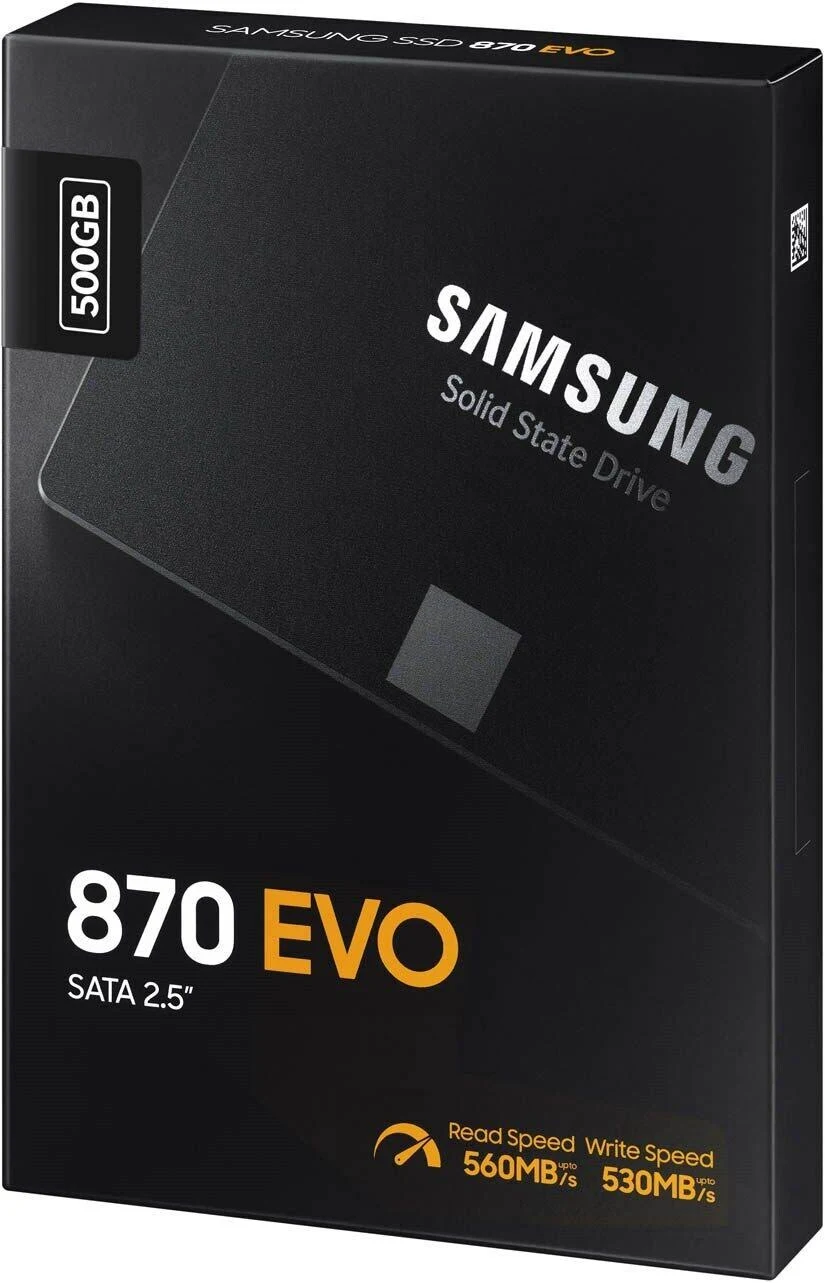 Samsung 500GB 870 EVO SSD, 2.5′, SATA3, V-NAND, R/W, 560/530 MB/s, 98K/88K IOPS, 7mm