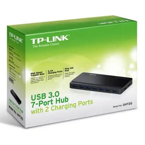TP-LINK (UH720) External 7-Port USB 3.0 Hub, Hot Plugging, 2 x 5V/2.4A Charging Ports
